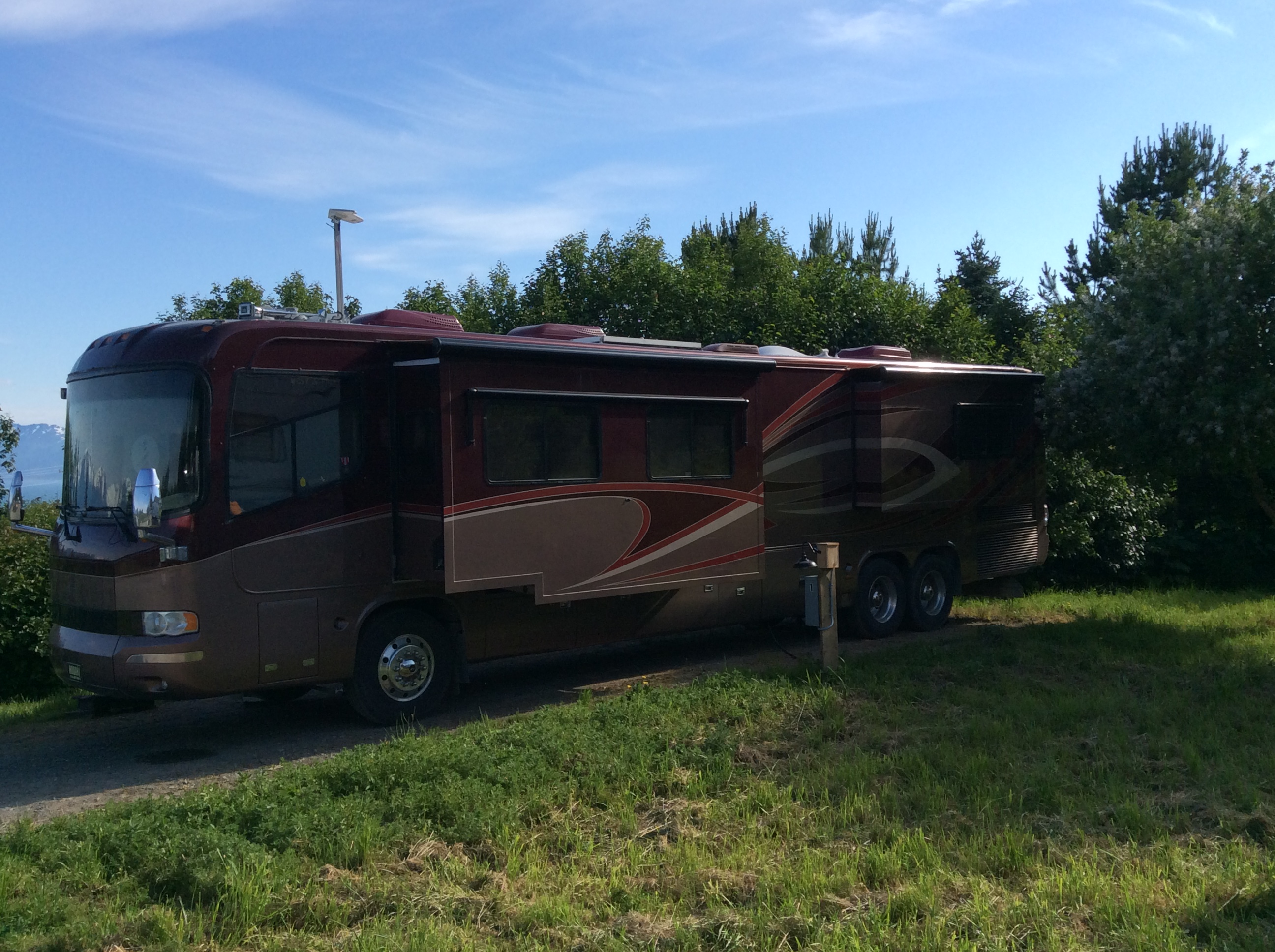 Carolyn and Gary all set up at RV Site #1 Carolyn and Gary all set up at RV Site #1 Their rig is looking real good here! RV Site #1 with 45’ pusher