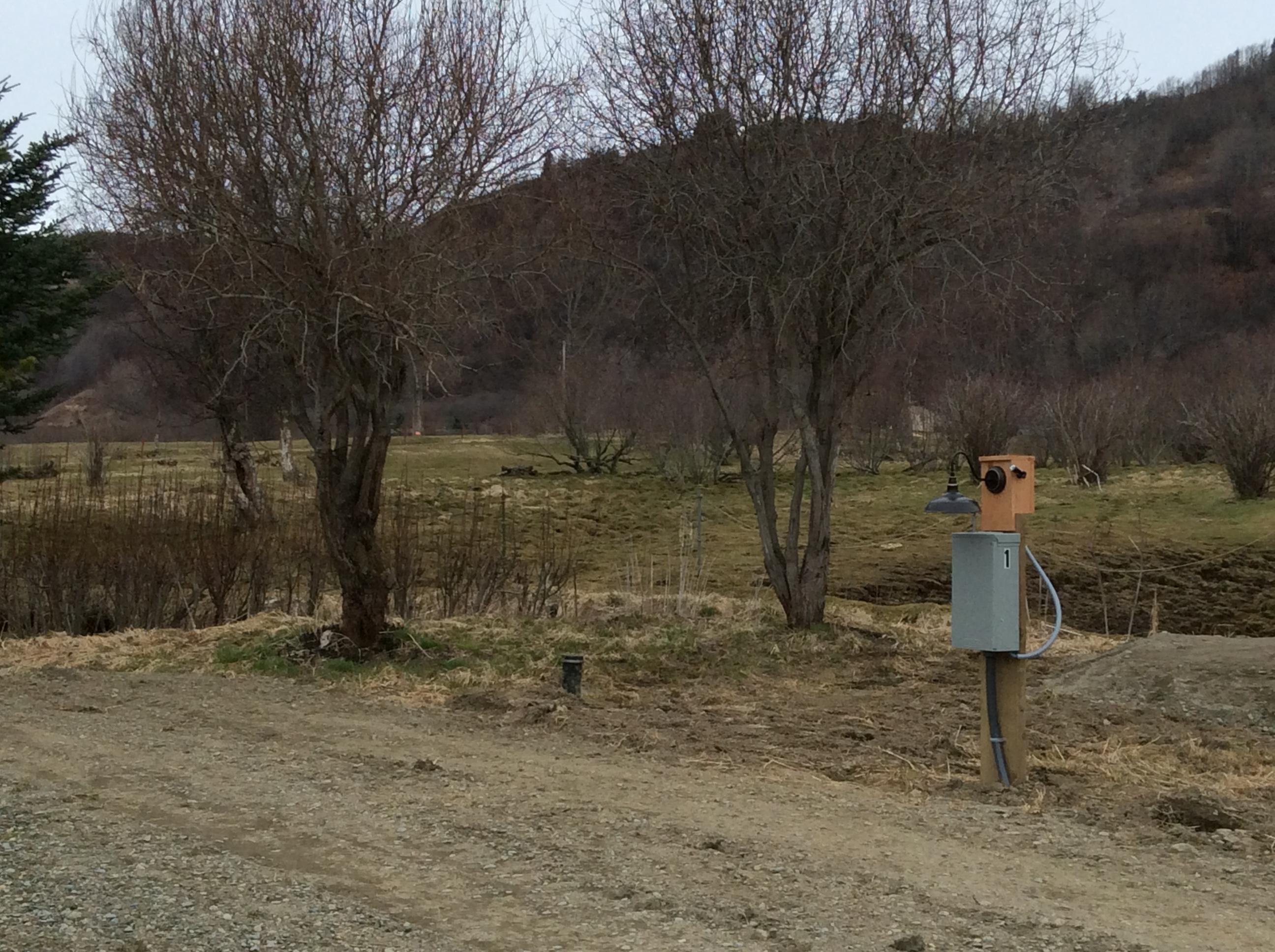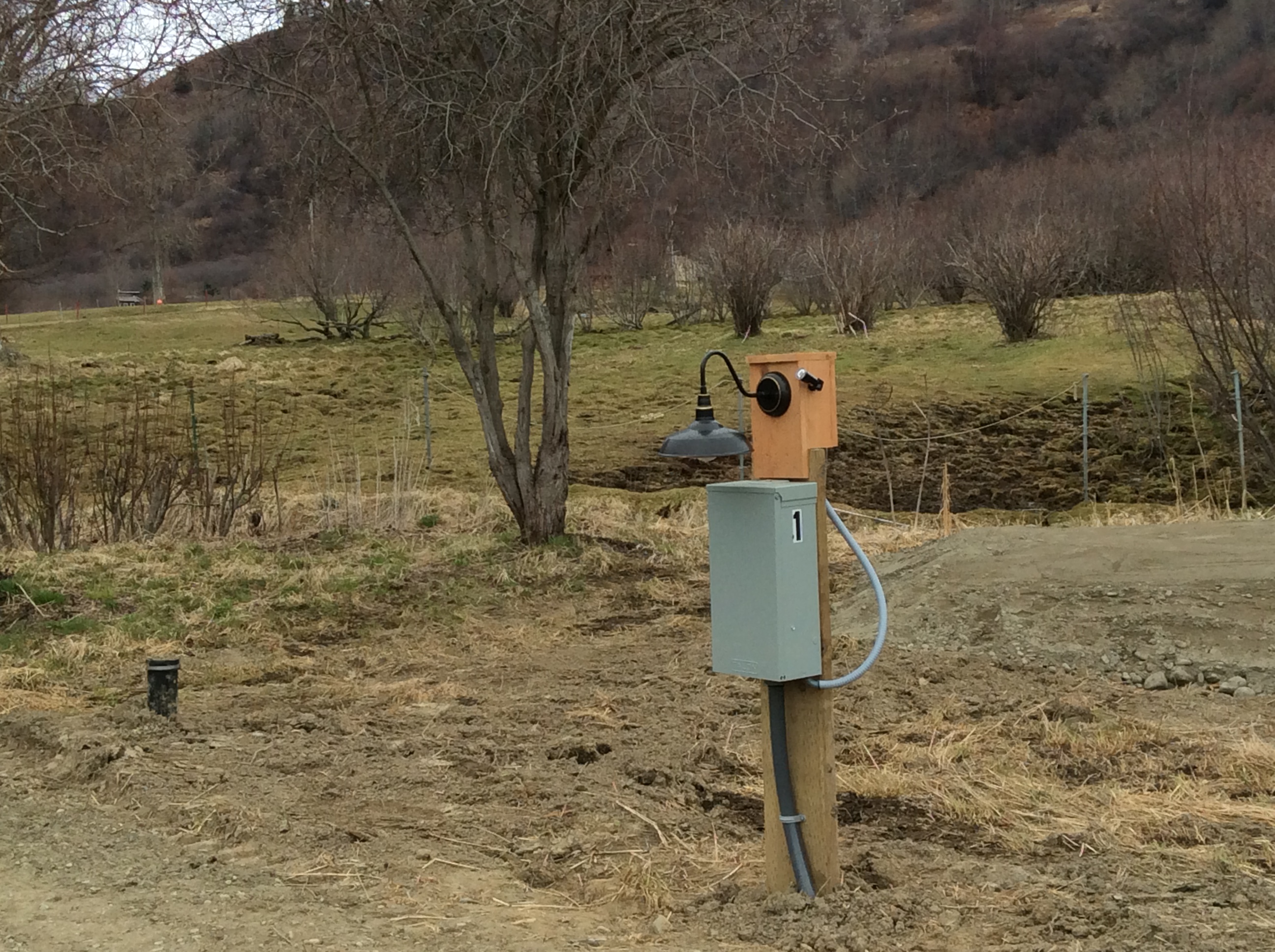 I finished the cedar light mount and installed the lamp for RV Site #1, I waited until dusk for the photocell to turn the lamp on……with no light yet I was surprised. Later on after a shower I waited a little longer until it was good and dark, still no light! I went out to check that the GFCI needed to be reset, sure enough, that was it.